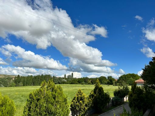 Bu resimlerdeki her fırça darbesi, sanatçının bu coğrafyaya duyduğu sevginin izini taşır. Evlerin çatılarına verdiği sıcak tonlar, bulutların yumuşak kıvrımları, tepelerin sakin iniş çıkışları... Hepsi, “Ben burayı tanıyorum, seviyorum, anlıyorum” diyen bir elin izidir.